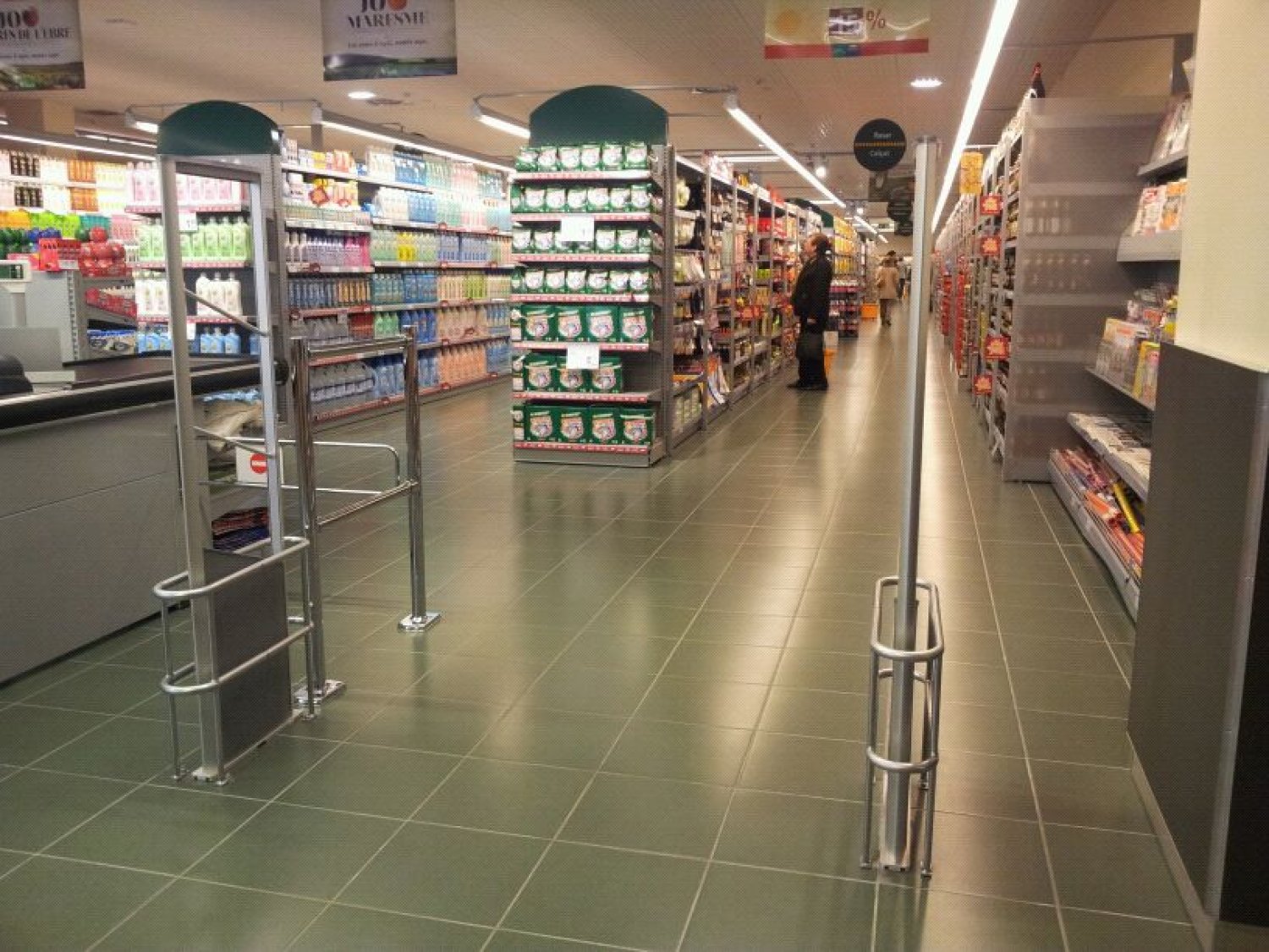 Sistemas antihurto para la proteccion de supermercados. Los arcos antihurto mas adecuados son los que trabajan en la tecnologia de Radiofrecuencia. Las etiquetas adhesivas antihurto que utiliza esta tecnologia son completamente planas y de un tamaño muy adecuado para la proteccion de este tipo de productos.